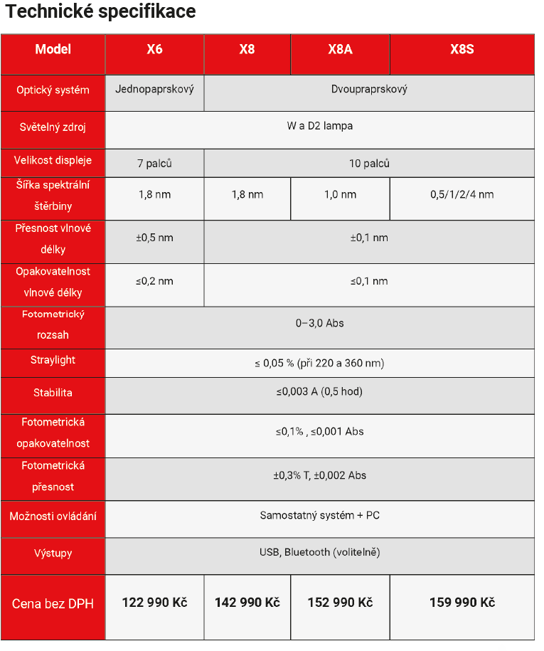Vylepšený výkon a uživatelsky přívětivé funkce jsou nyní k dispozici v nové X sérii spektrofotometrů Metash. Modely X6, X8, X8A a X8S přinášejí nejnovější technologie pro vaše analytické aplikace.