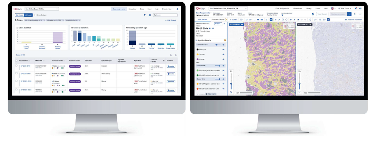 AISight Dx obsahuje funkce založené na umělé inteligenci pro kontrolu kvality vzorku, prioritizaci případů a posouzení buněčnosti nádoru.
