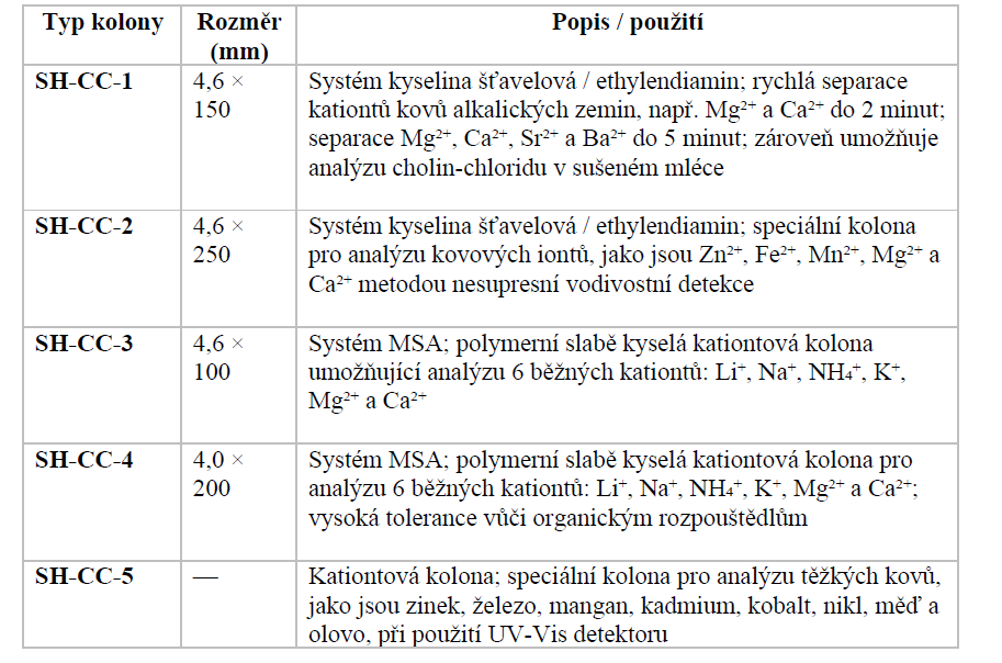 - speciální kolony pro postkolonovou derivatizaci při analýze kovových iontů