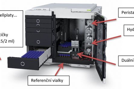 - kapacita až 6144 vzorků v závislosti na zvolené kombinaci držáků vialek/mikrotitr. destiček
